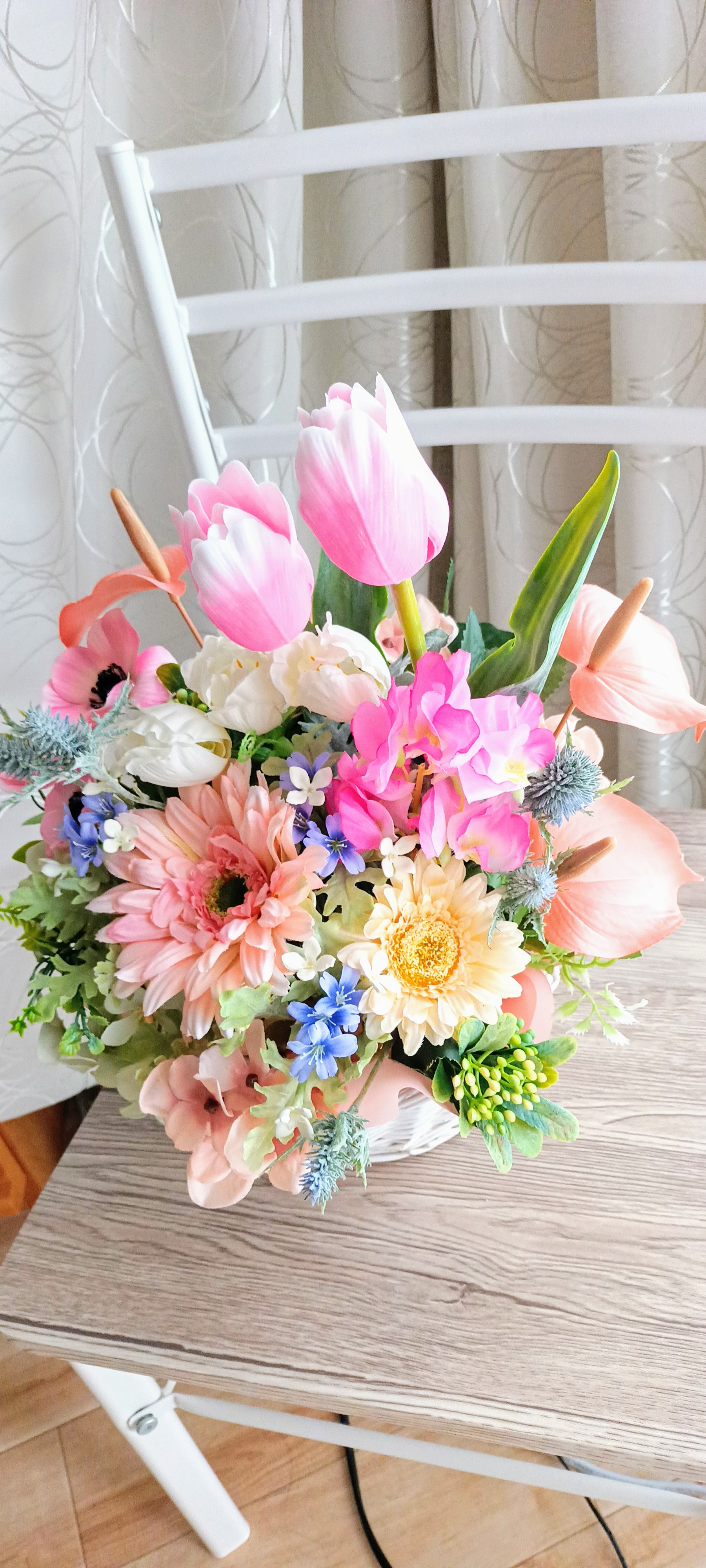 石鹸彫刻の花 可愛い白い籠アレンジ